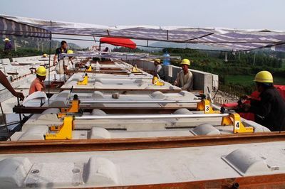 ②、鋼軌高低位置負調(diào)整時,應(yīng)先卸下錨固螺栓,提升鋼軌。